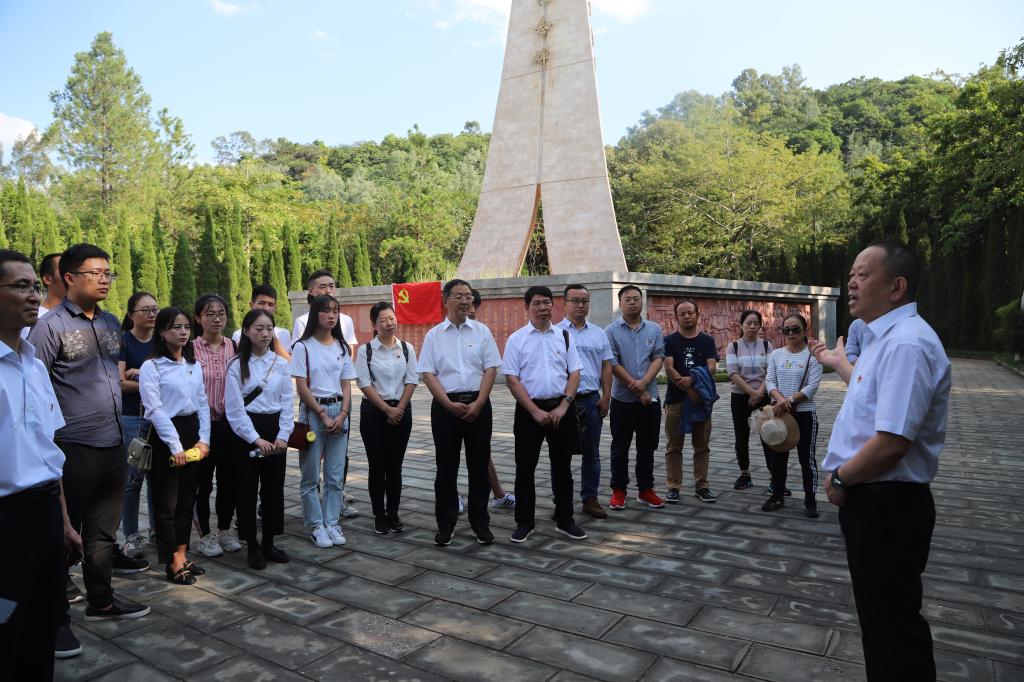 党委书记肖立军在攀枝花英雄纪念碑前为师生讲党课